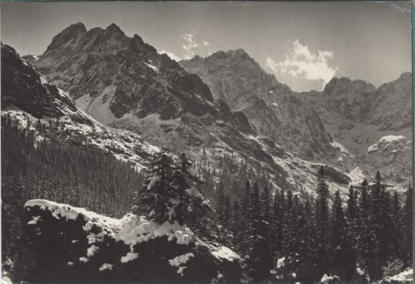 Tatry Wysokie. Widok z Doliny Białej Wody na południe: w przodzie Hruba Turnia, W tle Zadni Gerlach, Batyżowiecki Szczyt i Kaczy Szczyt.