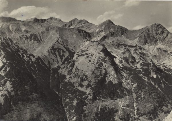 ZÁPADNÉ TATRY. Pohľad z Otrhancov na Príslop, Baníkov, Tri Kopy, Plačlivô a Roháče