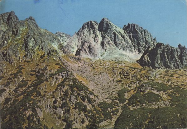 Tatry Wysokie. Wysoka, jeden z najpiękniejszych tatrzańskich szczytów i Smoczy Szczyt nad Dolin± Mięguszowieck±. Tytuł również w języku: niem., ang., fr.