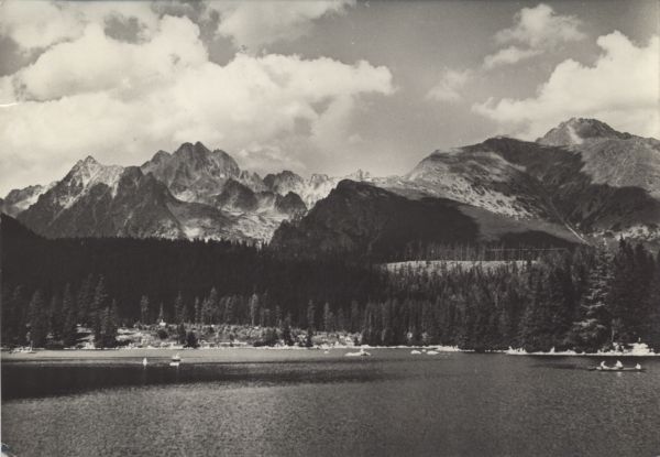 Szczyrbskie Jezioro. W tle: Kopa Popradzka, Wysoka, Osterwa, Tępa, Kończysta.