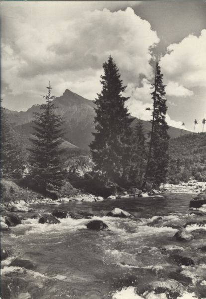 Tatry Wysokie. Krywań z Podbańskiej. W przodzie rzeczka Biała. Tytuł również w języku: ros., niem., ang.
