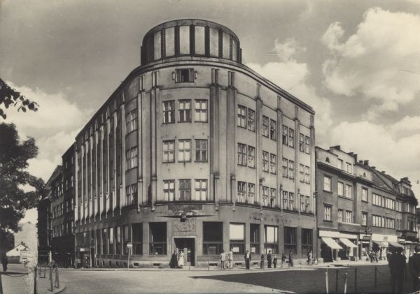 Pocztówka użyta w obiegu pocztowym, korespondencja. Znak graficzny z tekstem: V PROSPECH CESTOVNÉHO RUCHU. Kčs 0,20.