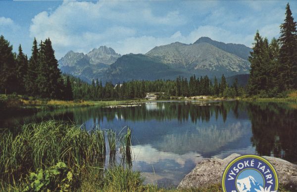 VYSOKÉ TATRY WYSOKIE TATRY - HOHE TATRA - THE HIGH TATRAS Pohľad od Nového Štrbského plesa (1315 m) na panorámu Vysokej (2560 m) a Končistej (2535 m).