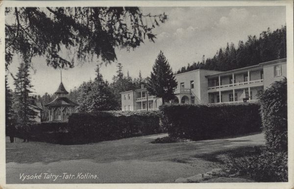 Sanatorium w Tatrzańskiej Kotlinie. Na dole po lewej stronie wpisany tytuł.