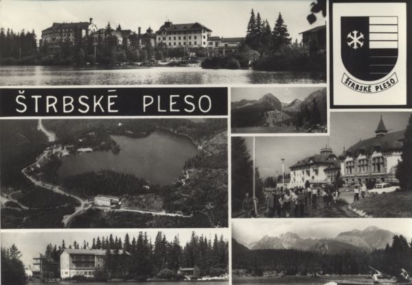 Widok na Kopę Popradzk±, Wysok±, Osterwę, Tęp± i Kończyst±. W prawym rogu u góry herb miasta, po lewej stronie napis: ©TRBSKÉ PLESO.