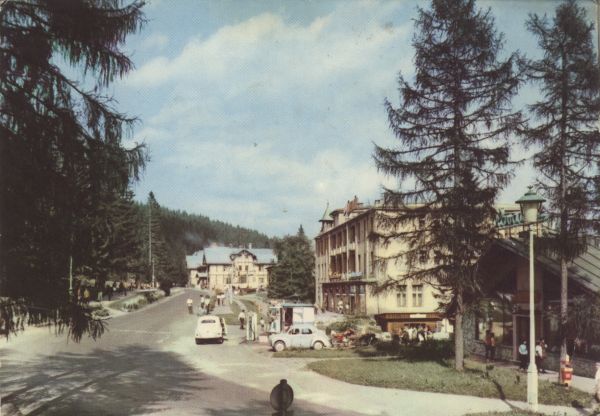 Pocztówka bez obiegu pocztowego, korespondencja. Logotyp wydawcy. Znak graficzny z tekstem: V PROSPECH CESTOVNÉHO RUCHU. Kčs 0,20.