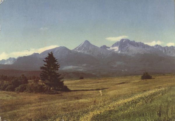 Tatry Wysokie. Od lewej: Tępa, Kończysta, Batyżowiecki Szczyt, Szczyt Stalina. Tytuł również w języku: ros., ang., niem.