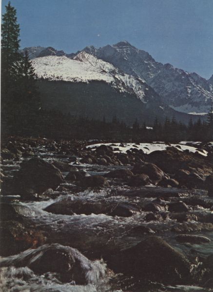 Czechosłowacja - TARTY WYSOKIE. Dolina Jaworowa z górską rzeką Jaworowym Potokiem. W tle grupa Lodowego Szczytu.