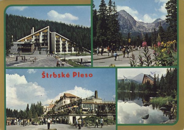 VYSOKÉ TATRY - WYSOKIE TATRY - HOHE TATRA - THE HIGH TATRAS Štrbské Pleso /1355m/ Hotel FIS v Mlynickej doline. Pohľad do Mlynickej doliny, v pozadí Štrbské Solisko /2301 m/. Hotel Patria.
