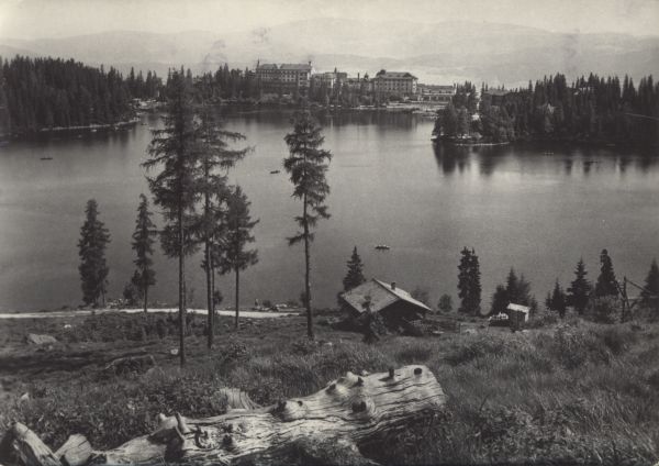Widok na Szczyrbskie Jezioro. W dali nad jeziorem budynki sanatorium Hviezdoslav i Krywań.