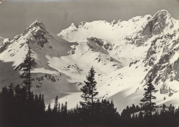 Zimowy widok z Doliny Mięguszowieckiej. Od lewej: Wołowiec Mięguszowiecki (dawniej Szczyt Olgi), Mięguszowiecki Szczyt Czarny, Hińczowa Turnia, Wołowy Grzbiet i Wołowa Turnia.