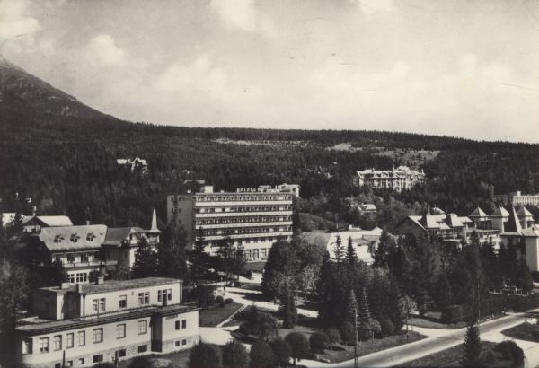 Nowy Smokowiec. Widok na osadę, park i budynki sanatoryjno hotelowe.
