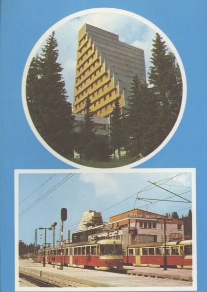 Wysokie Tatry - Szczyrbskie Jezioro. Hotel Panorama. Stacja kolejki zębatej.