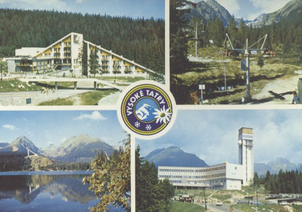 Budynek Telekomunikacji. W ¶rodku pocztówki logo miasta VYSOKÉ TATRY.