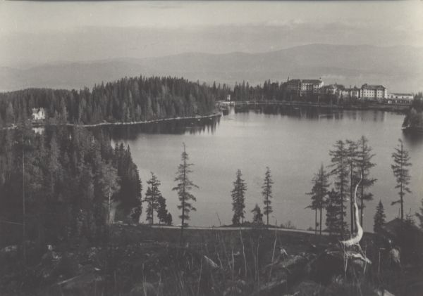 Tatry Wysokie - Widok na Szczyrbskie Jezioro na sanatoria Hviezdoslav i Krywań.