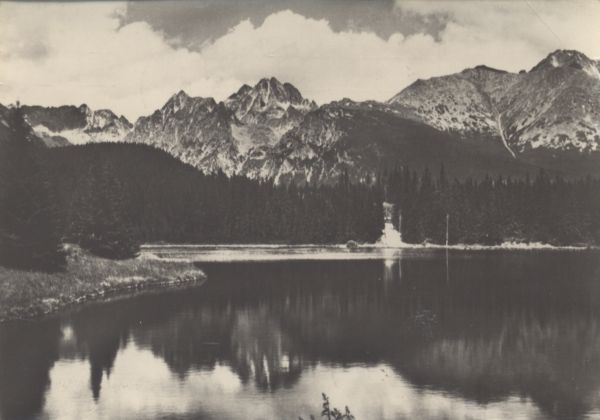 Widok na Szczyrbskie Jezioro. W tle Wołowy Grzbiet, Kopa Popradzka, Wysoka, Osterwa, Tępa i Kończysta.