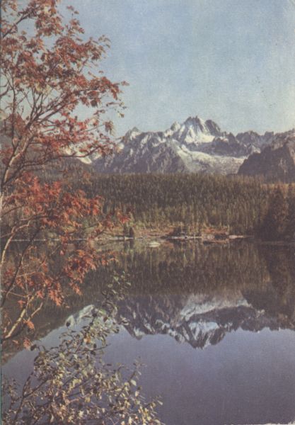Tatrzański Park Narodowy [Słowacja]. Szczyrbskie Jezioro, w tle Wysoka. Tytuł również w języku: ros., niem., ang.
