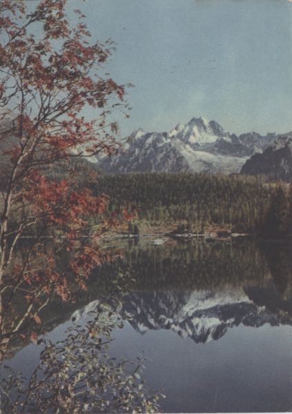 Tatrzański Park Narodowy [Słowacja]. Szczyrbskie Jezioro, w tle Wysoka. Tytuł również w języku: ros., niem., ang.