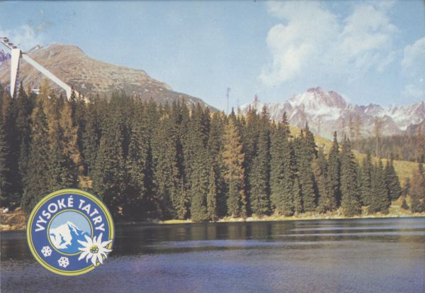 VYSOKÉ TATRY Pohľad od Štrbského plesa (1346 m) na lyžiarsky mostík, za ním Patria (2203 m), vpravo Vysoká (2560 m) a Ostrva (1984 m)