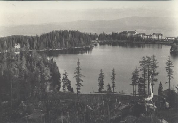 Widok na Szczyrbskie Jezioro. W dali nad jeziorem budynki sanatorium Hviezdoslav i Krywań.