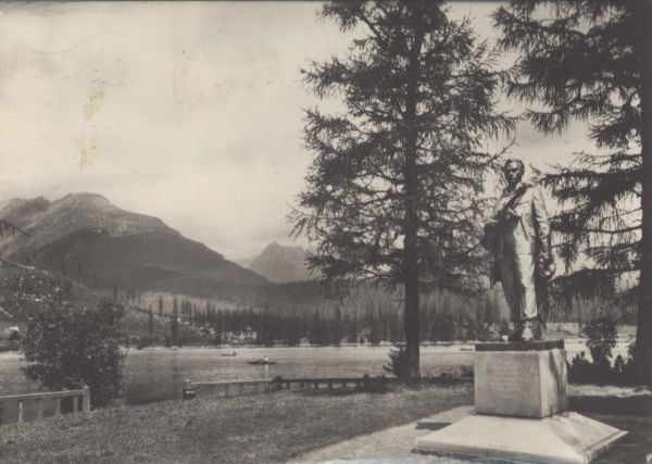 Tatry Wysokie. Szczyrbskie Jezioro. Pomnik Słowackiego Powstania Narodowego. (akademicki rzeĽbiarz Ladislav Snopek: "Vám čest").