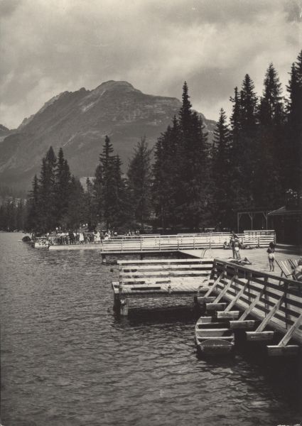 TATRANSKĘ NÁRODNĘ PARK Kúpalisko na ©trbskom plese. V pozadí Patria (2205 m) a hrebeò Báčt