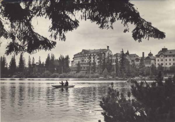 VYSOKÉ TATRY Pohľad od Štrbského plesa (1350 m) na liečebné ústavy Hviezdoslav a Kriváň