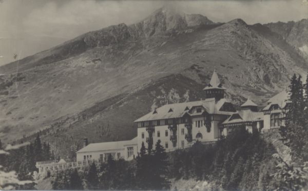 Zabudowania sanatoryjne nad Szczyrbskim Jeziorem i ich otoczenie. W tle Krywań i Siodełkowa Kopa.