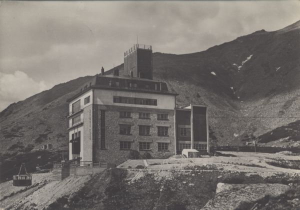 Tatry Wysokie - Hotel Encián i stacja kolei linowej nad Łomnickim Stawem.