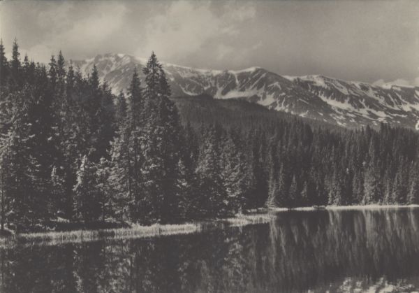 Niżne Tatry. Wrbicki Staw a w nim odbijający się las. W tle Deresze.