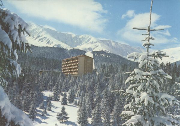 Związkowy dom wypoczynkowy Słowackie Powstanie Narodowe w zimowej scenerii. W tle Niżne Tatry.
