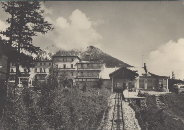 Górna stacja kolei linowo-terenowej na Siodełko. Obok budynek Związkowego Domu Wypoczynkowego.