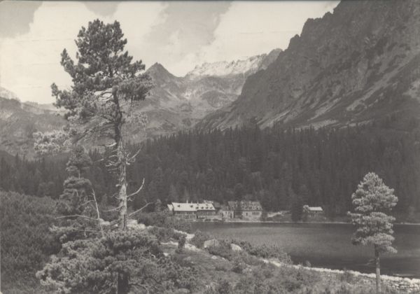 Widok na Schronisko nad Popradzkim Stawem. W tle Wołowiec Mięguszowiecki.