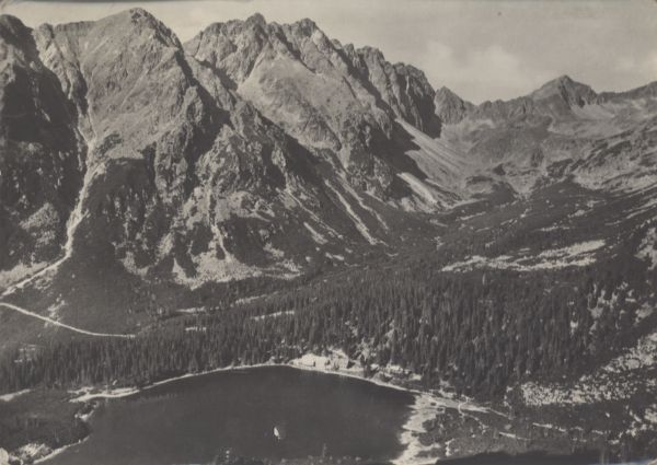 VYSOKÉ TATRY - pohľad z Ostrvy na Popradské pleso a Mengusovskú dolinu. V hrebeni Bašty: Malá Bašta, Predná Bašta, Satan, Zadná Bašta, Kôprovské sedlo a Kôprovský štít.