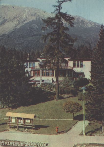Widok na budynek Grand Hotelu Tawerna i jego otoczenie - park. W tle Sławkowski Szczyt.