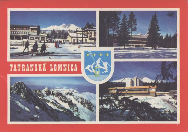 Dom wypoczynkowy Uran. W środku herb i napis: TATRANSKÁ LOMNICA.