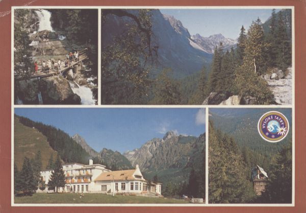 VYSOKÉ TATRY - VYSOKIE TATRY - HOHE TATRA - THE HIGH TATRAS Studenovodské vodopády. Divá veža a Svišťový štít vo Veľkej Sudenej doline. Zotavovňa ROH Hrebienok. Bilíkova chata.