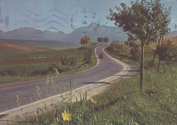 Pocztówka użyta w obiegu pocztowym, korespondencja. Znak graficzny z tekstem: V PROSPECH CESTOVNÉHO RUCHU. Kčs 0,20. Logotyp wydawcy.