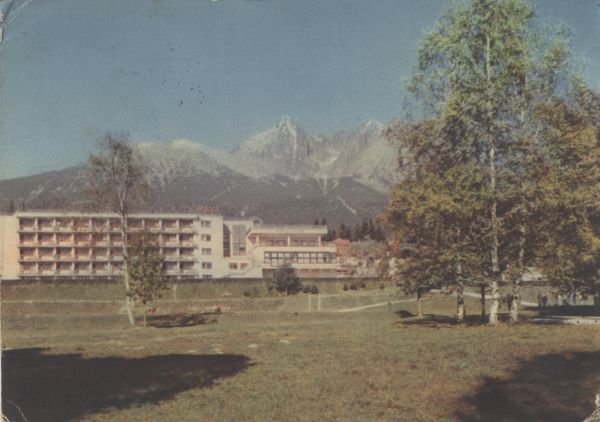 VYSOKÉ TATRY - Tatranská Lomnica Zotavovňa ROH Morava. V pozadí Lomnický ątít (2634 m) a Keľmarský ątít (2556 m)