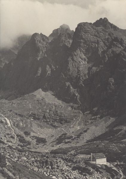 Pocztówka użyta w obiegu pocztowym, znaczek oderwany, korespondencja. Znak graficzny z tekstem: V PROSPECH CESTOVNÉHO RUCHU. Kčs 0,20. Dodatkowo pieczęć schroniska: (pocz±tek nieczytelny) "Sliezsky dom", poąta Tatr. Polianka.