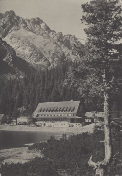 VYSOKÉ TATRY Chata kpt. Morávku (1500 m) pri Popradskom plese (1494 m), v Mengusovskej doline. V pozadí Predná Bašta (2364 m)
