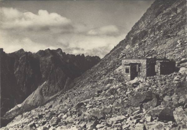 Schronisko pod Rysami. W tle widoczna grań Baszt nad Doliną Mięguszowiecką. Z tyłu Krywań.