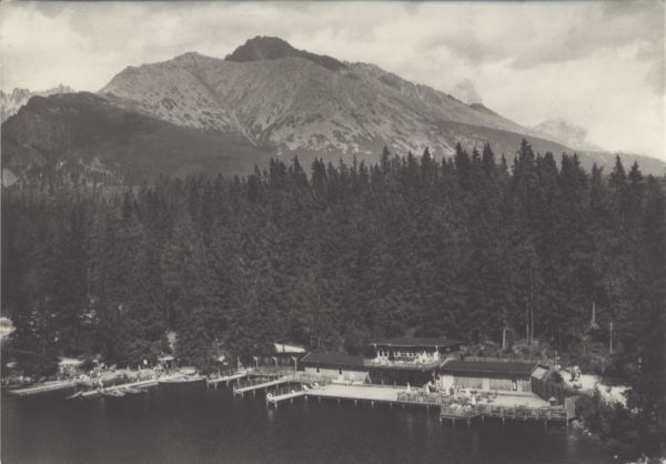 VYSOKÉ TATRY Štrbské pleso (1350 m) Kúpalisko, v pozadí Tupá (2284 m) a Končistá (2534 m)