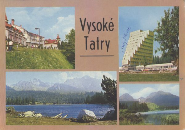 VYSOKÉ TATRY WYSOKIE TATRY - HOHE TATRA - THE HIGH TATRAS Štrbské pleso (1355 m) Liečebné domy "Kriváň" a "Hviezdoslav" - Hotel "Panoráma" - Panoráma Štrbského plesa (1346 m)
