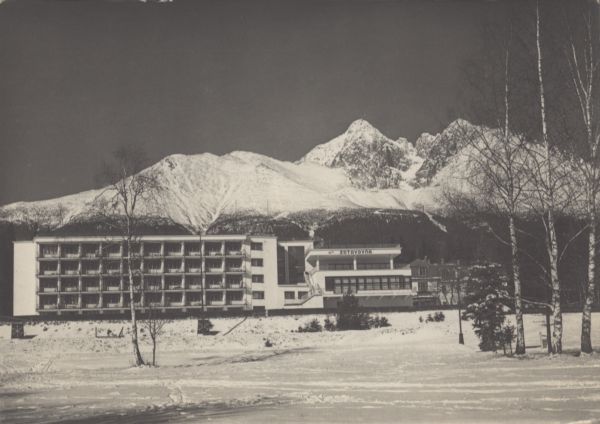 VYSOKÉ TATRY - Tatranská Lomnica Zotavovňa ROH Morava. V pozadí skupina Lomnického ątítu (2634 m)