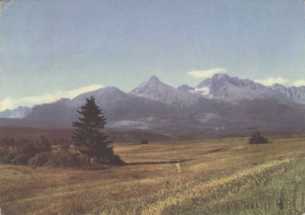 Tatry Wysokie. Od lewej: Tępa, Kończysta, Batyżowiecki Szczyt, Szczyt Stalina. Tytuł również w języku: ros., ang., niem.