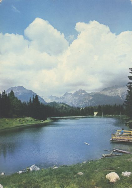 VYSOKÉ TATRY - WYSOKIE TATRY - HOHE TATRA - THE HIGH TATRAS Nové Štrbské pleso (1315 m), vzadu Veľké Solisko (2404 m), Štrbský štít a Patria