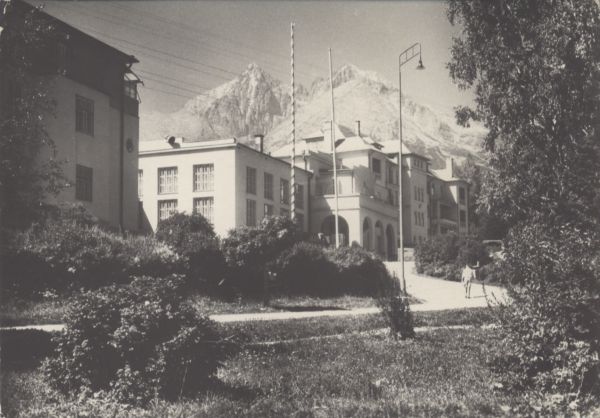 VYSOKÉ TATRY - Tatranské Matliare Vojenskę lieèebnę ústav. V pozadí Lomnickę čtít (2634 m) a KeŸmarskę čtít (2556 m)