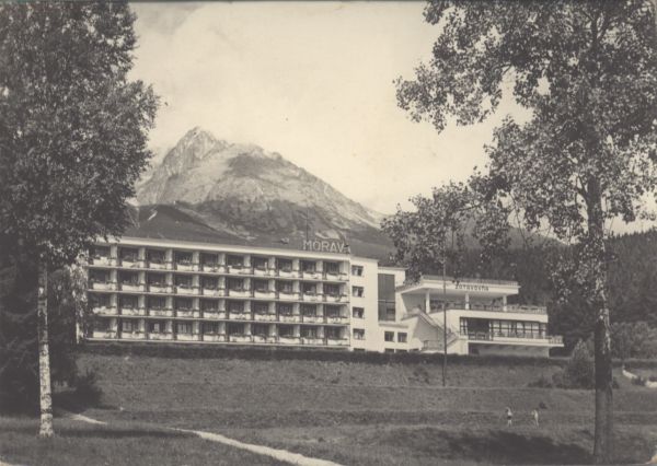 Tatry Wysokie - Tatrzańska Łomnica. Dom wypoczynkowy RZZ Morawa. W tle Kieżmarski Szczyt.