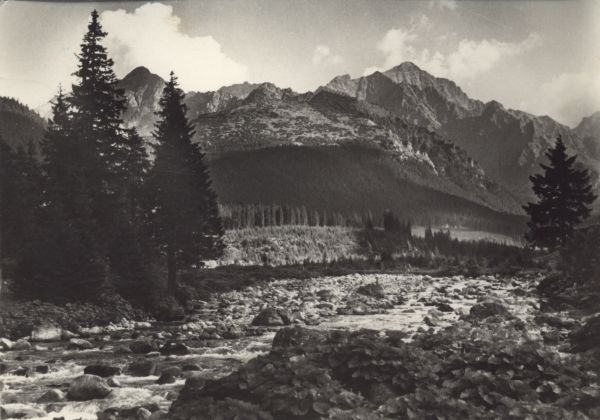 Dolina Jaworowa. Widok na Kołowy Szczyt, Baranie Rogi, ¦nieżny Szczyt i Lodowy Szczyt. Na pierwszym planie Jaworowy Potok.